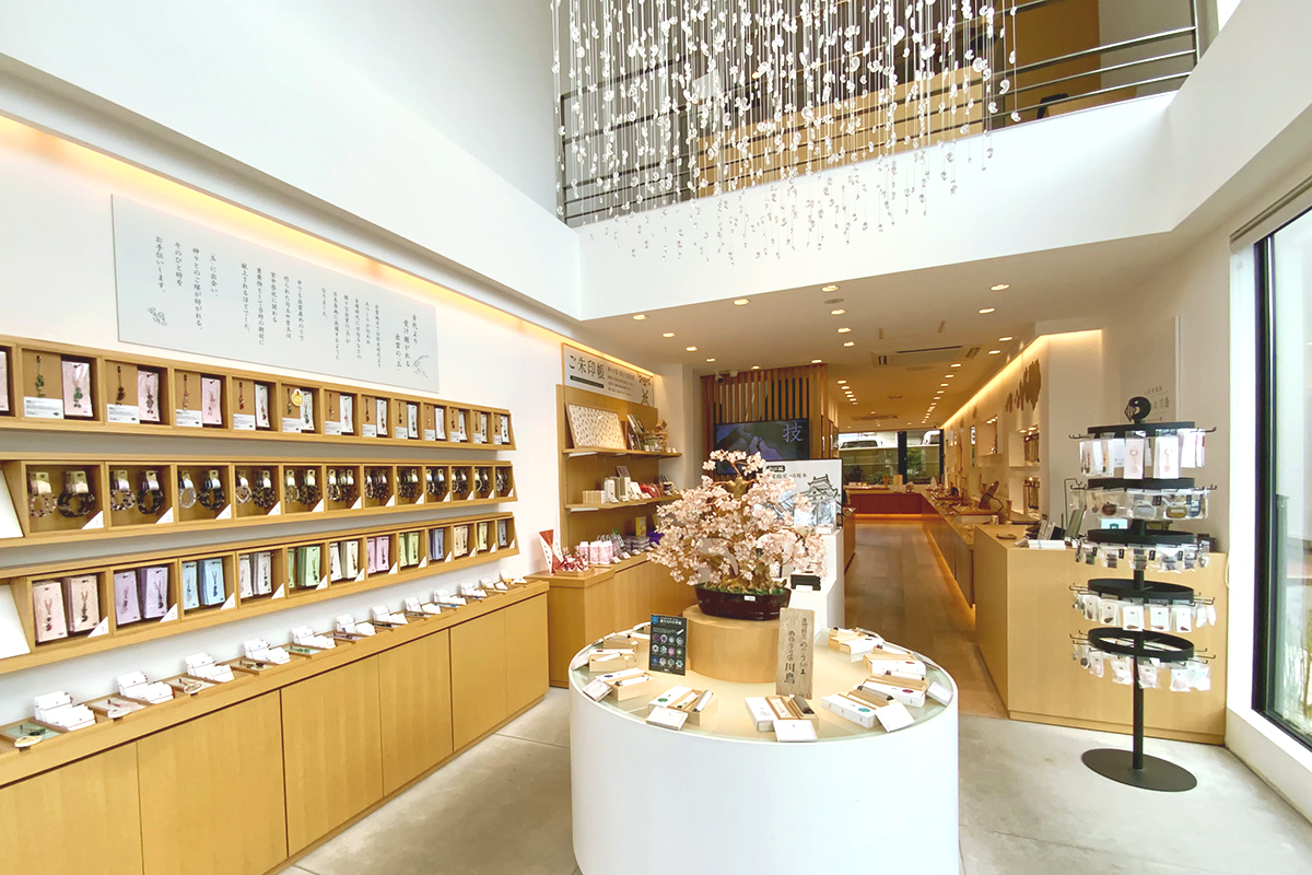 | 店舗紹介 | 明治10年に創業されためのう店。出雲石と称される玉湯町花仙山産の碧玉を贅沢に使用した勾玉や、日本最古の装身具とされる美保岐玉など貴石細工の美しさが堪能できます。 日本古来の三種の神器のひとつ勾玉を無数にあしらったシャンデリアが印象的な店内には、「縁結び」「開運」「浄化」などのテーマごとに石や水晶、アクセサリーが並び、身近な装飾品から貴重なものまで楽しく品選びができます。 |